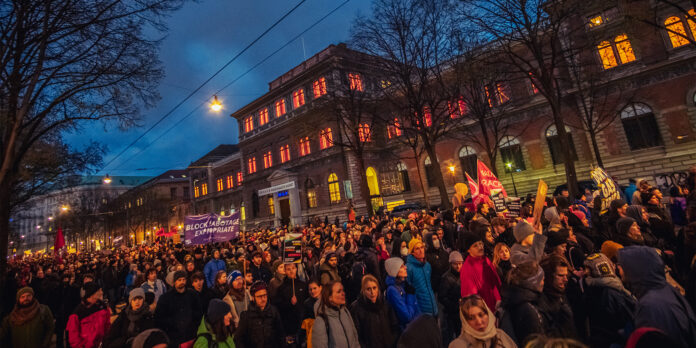 Wien | Tausende Klima-Demonstranten versammelten sich am Dienstagabend in der Wiener Innenstadt und forderten angesichts der vielkritisierten Gaskonferenz den Ausstieg aus fossilen Brennstoffen. Seitens der Polizei gab es keine offiziellen Zahlen, die Veranstalter sprachen von rund 7.000 Teilnehmern. Die Route des Demozuges verlief vom Stephansplatz über die Rotenturmstraße und endete nach 21 Uhr am Karlsplatz. Fotograf Christopher Glanzl hat die Schlüsselszenen für ZackZack festgehalten: