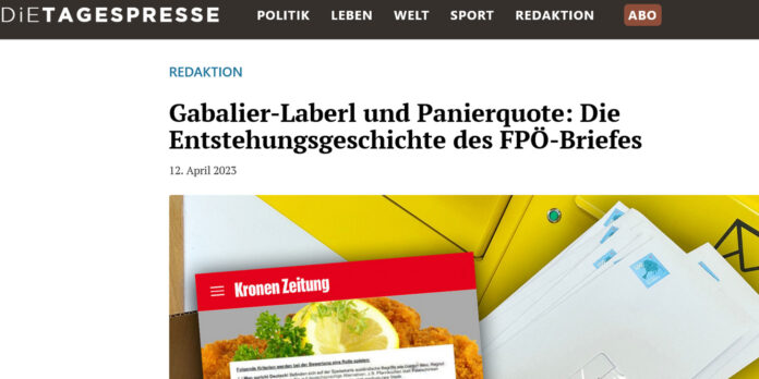 Deswegen packte „die Tagespresse“ selber an und versandte an niederösterreichische Gastwirte Briefe im Namen der FPÖ NÖ, die am Dienstag in den österreichischen Medien aufschlagen sollten. Im Fake-FPÖ-Brief schlug man unter anderem eine „Panierquote“ oder „Gabalier-Fleischlaberln“ vor, damit man die Prämie für die heimische Küche erhält. Die FPÖ war erbost und drohte mit Anzeige.
