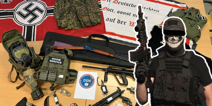 Titelbild: DSN; Foto eine Mitgliedes der “Feuerkrieg Division” via Riot-Chat; ZackZack-Collage