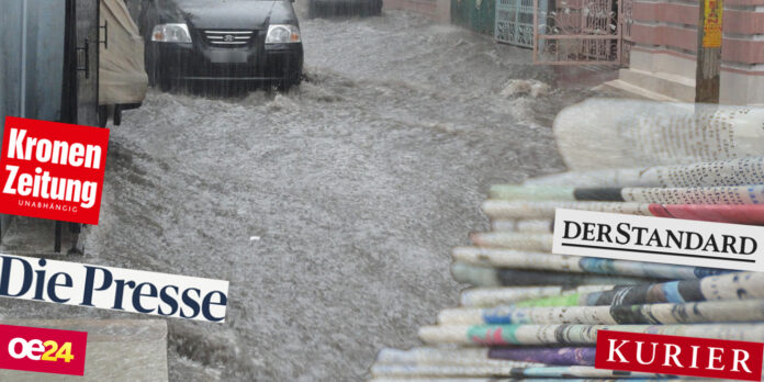 In der Flutkatastrophe hat die ÖVP wichtige Medien für den Wahlkampf verloren. Nur Österreich und Die Presse schwimmen brav mit.